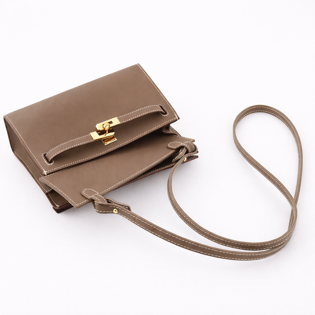 The Orliná Convertible Kelly Pochette Strap is handcrafted in smooth Swift leather, carefully selected to mirror the softness, movement, and finish of the original bag. Every detail from colour-matched stitching to considered hardware tones is designed to integrate seamlessly with the bag.